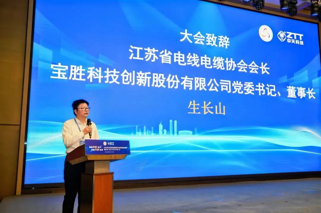 江苏省电线电缆行业协会会长、宝胜股份党委书记、董事长生长山在大会致辞中总结江苏线缆产业过去一年的成就:产业稳健发展,综合实力全国领先,6家江苏缆企上榜全国竞争力10强,20家入选全国百强,4家企业入围中国企业500强等,品牌影响力持续攀升。协会坚守团结、互助、发展、共赢宗旨,推动扬州倡议落地,在智能制造、人才培育和行业自律方面取得突破,如成功启动青创会活动、助力企业探索智改数转网络解决方案等。