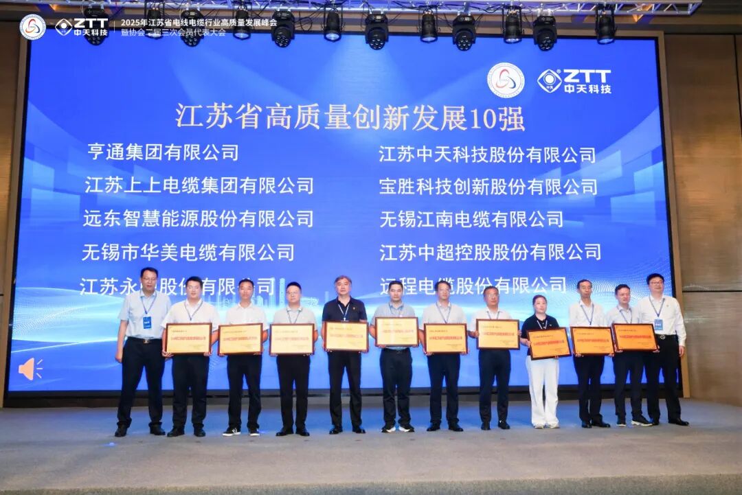▲宝胜入选2024年度江苏线缆产业高质量创新发展企业10强榜单